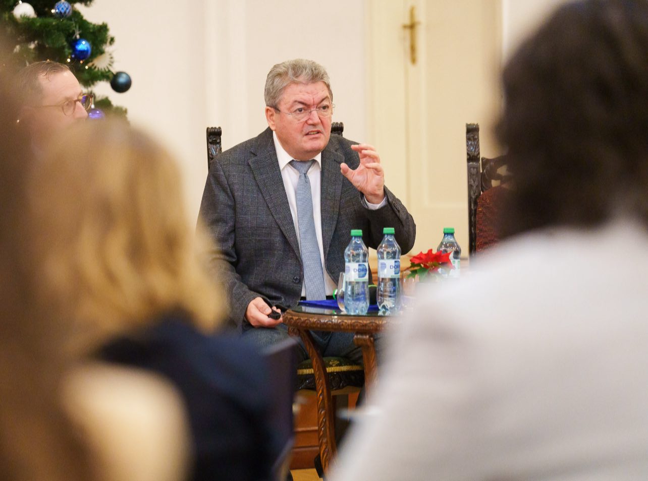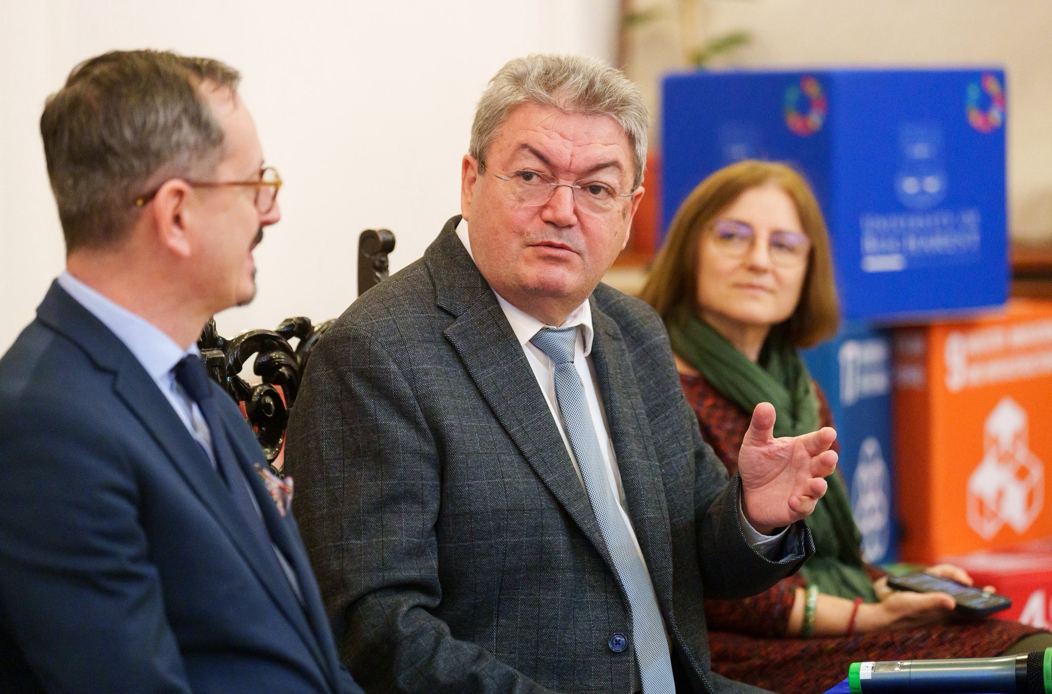 La întâlnirea de astăzi 🙌 au luat cuvântul prof. univ. dr. Marian Preda, Rectorul UB, prof. univ. dr. Carmen Chifiriuc, Prorector pentru Cercetare, și prof. univ. dr. Lucian Ciolan, Prorector pentru Proiecte de Dezvoltare și Învățare Continuă.