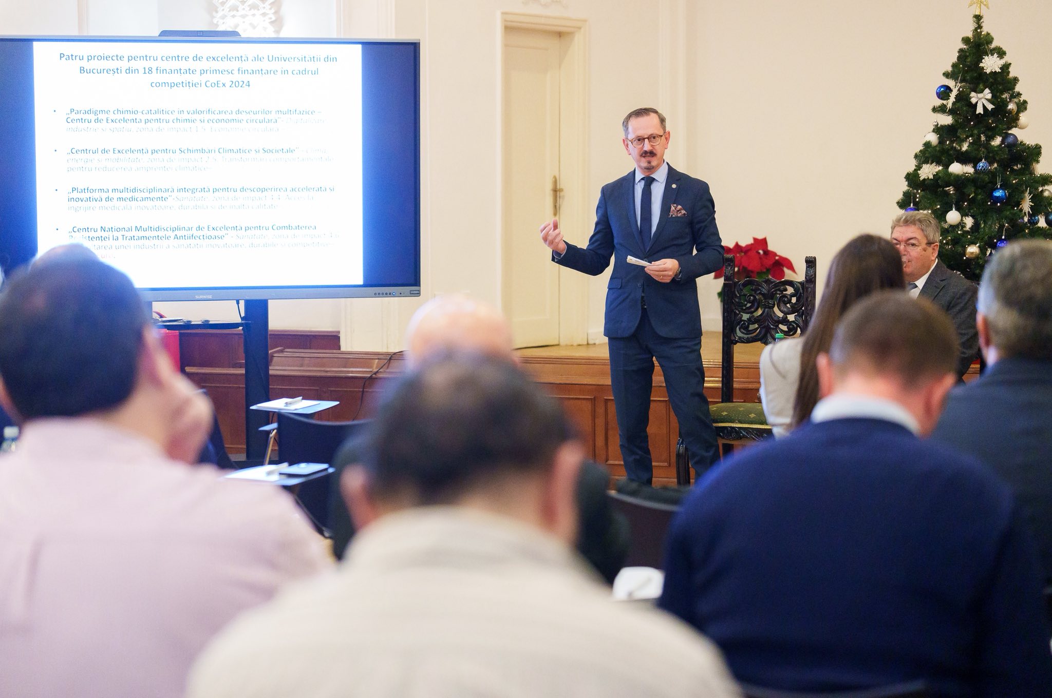 „Universitatea din București este astăzi un spațiu al inovației și al ideilor care transformă. Ne bazăm pe coordonatorii proiectelor de cercetare și dezvoltare instituțională pentru a duce mai departe misiunea UB de a contribui semnificativ la dezvoltarea societății. Prin profesionalismul și dedicarea lor, proiectele noastre capătă vizibilitate și relevanță internațională”, a subliniat prof. univ. dr. Marian Preda, Rectorul UB.