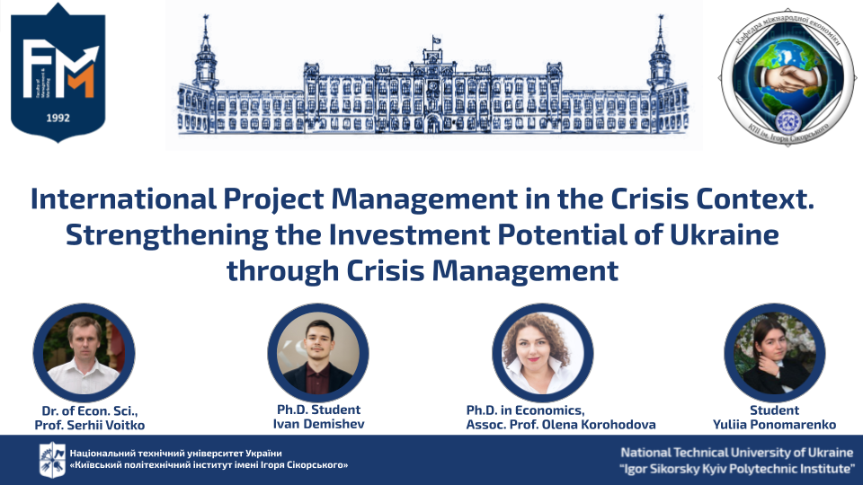 1.⁠ ⁠⁠O prezentare cu tema: "International Project Management in the Crisis Context," oferită de Prof. Serhii Voitko, Conf. Olena Korohodova, Student Iuliia Ponomarenko, de la Institutul Politehnic „Igor Sikorsky” din Kiev
